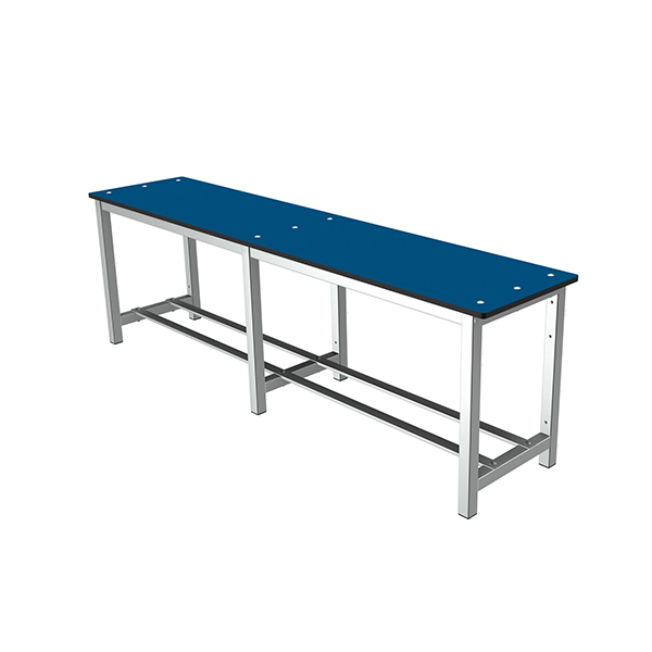 Banco con asiento de compacto fenólico, ideal para ambientes húmedos. Alta resistencia a la humedad, impactos y productos de limpieza.