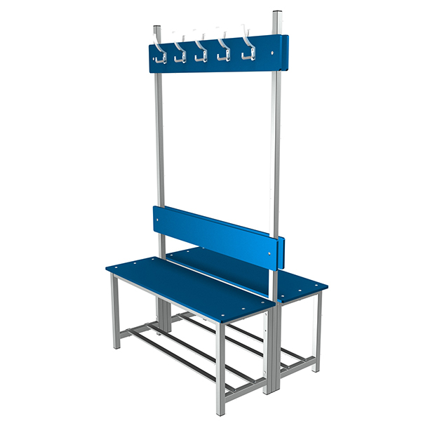 Banco con asiento fenólico y chasis en acero inoxidable. Máxima durabilidad e higiene para vestuarios en entornos exigentes como spas, piscinas o centros sanitarios.