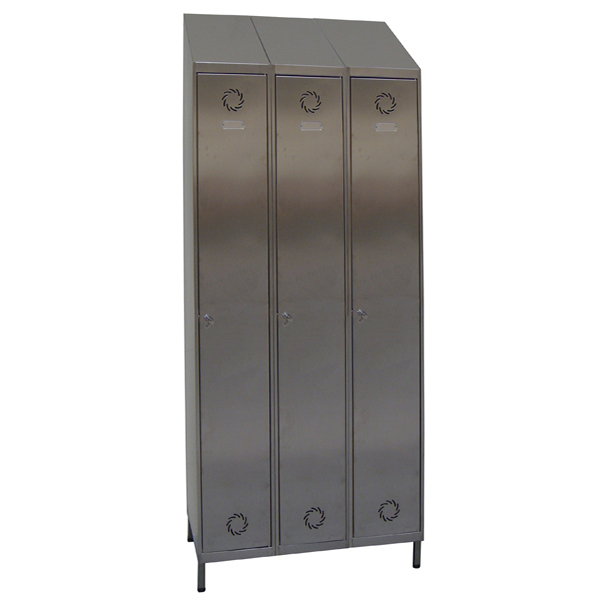 Taquilla soldada monoblok fabricada en chapa de acero inoxidable de 0,8 mm de espesor.