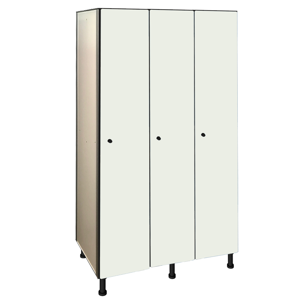 Taquilla fabricada con panel fenólico y perfilería de aluminio, especialmente indicada para espacios húmedos o de uso intensivo. Resistente, higiénica y de fácil mantenimiento.
