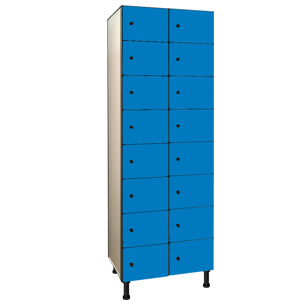 Taquilla fabricada con panel fenólico y perfilería de aluminio, especialmente indicada para espacios húmedos o de uso intensivo. Resistente, higiénica y de fácil mantenimiento.