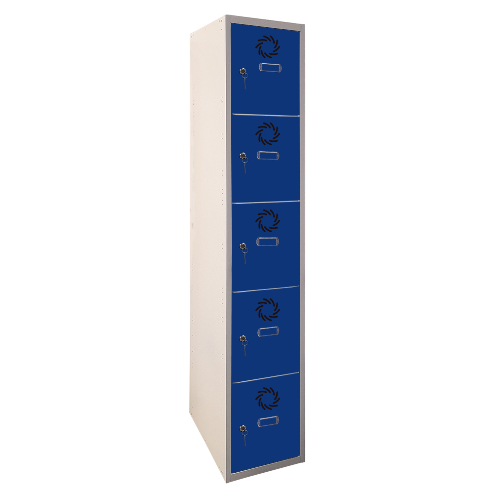 Taquilla metálica de 1 cuerpos, 5 puertas y 300 mm de anchura por columna. Fabricada en acero reciclable, combina resistencia, funcionalidad y sostenibilidad para un uso intensivo.