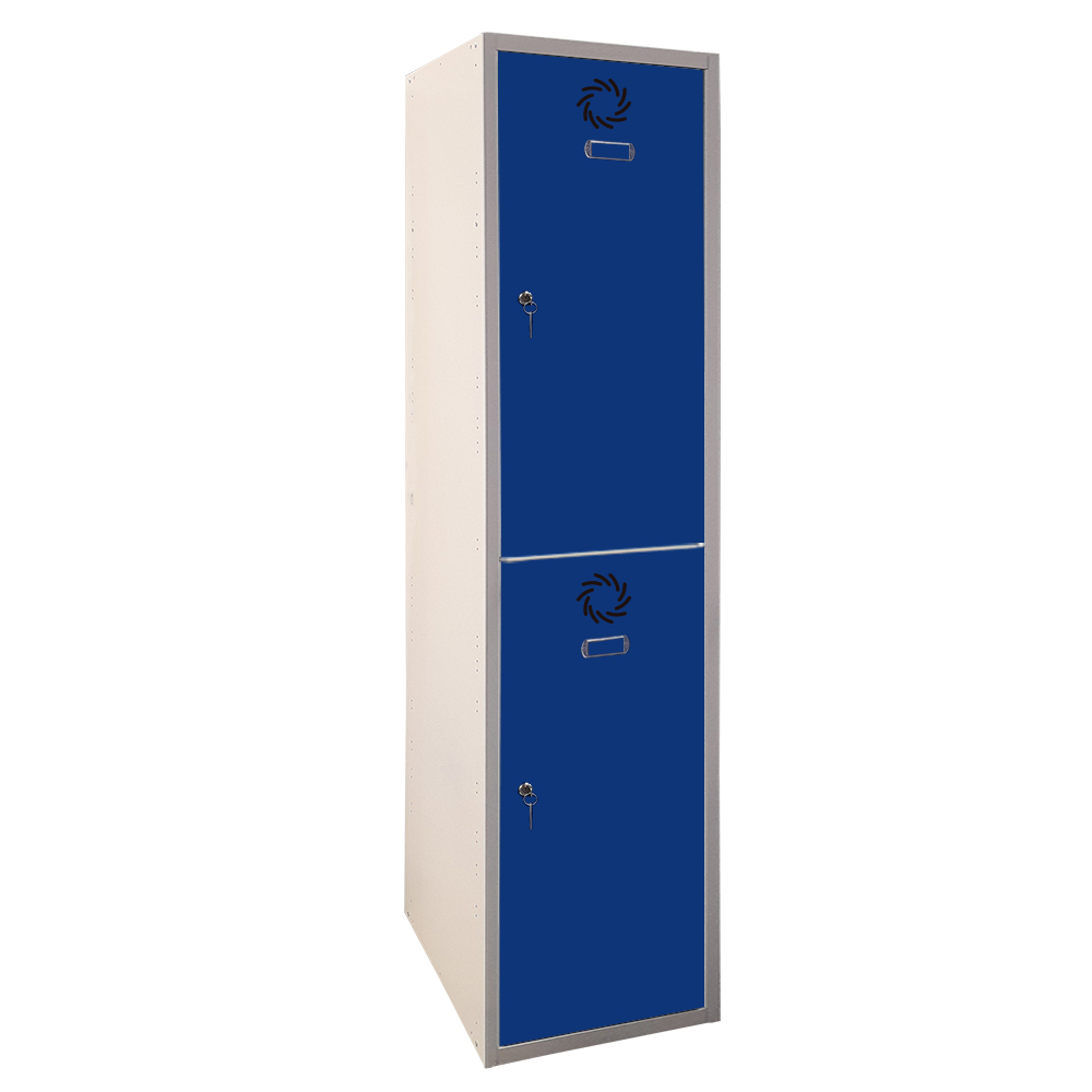 Taquilla metálica de 1 cuerpo, 2 puertas y 400 mm de anchura por columna. Fabricada en acero reciclable, combina resistencia, funcionalidad y sostenibilidad para un uso intensivo.