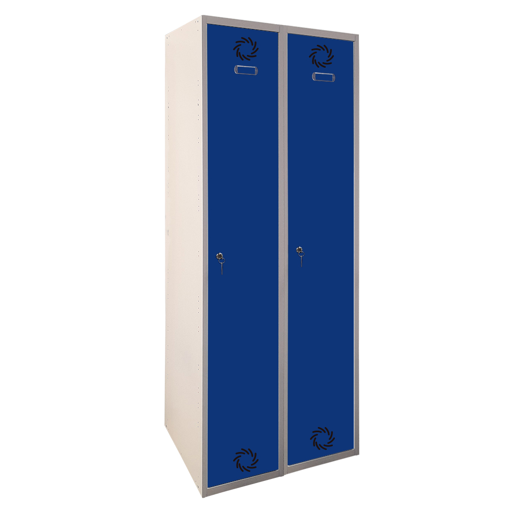 Taquilla metálica de 2 cuerpos, 1 puerta y 300 mm de anchura por columna. Fabricada en acero reciclable, combina resistencia, funcionalidad y sostenibilidad para un uso intensivo.
